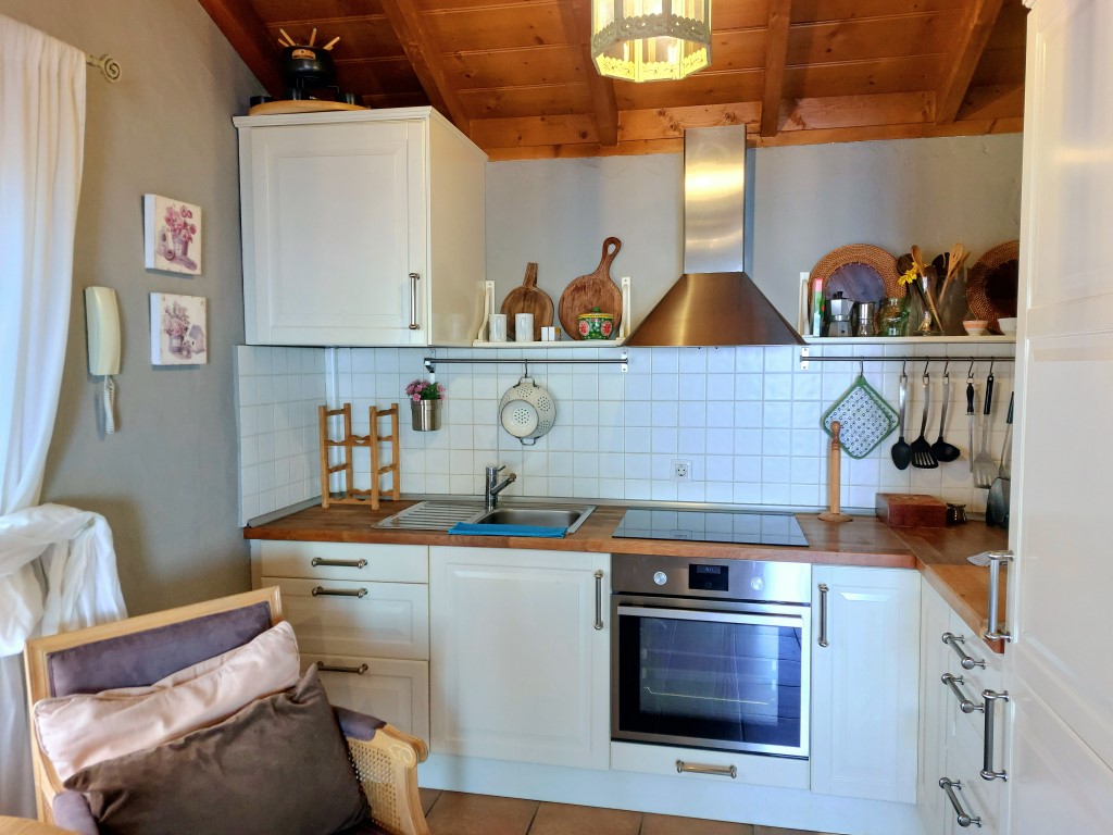 Das Haus besteht aus einem Wohn-Ess-Zimmer mit Küche, einem Schlafzimmer für zwei Personen und einem Badezimmer. Im Außenbereich lassen sich auf den großzügigen Terrassen mit Panoramablick traumhafte Sonnenauf- und -untergänge bestaunen. Der überdachte Grillplatz ist mit allen erforderlichen Utensilien für die Zubereitung köstlicher Gerichte im Freien ausgestattet.